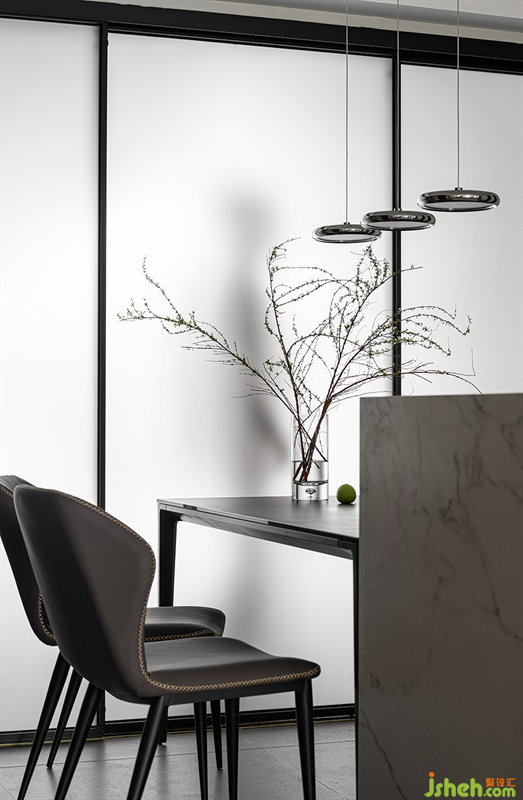 石板餐桌、咖色座椅、極具藝術感的吊燈融匯在整個餐廳設計中,增添了更具時尚感和個性感的格調,餐廳也以它獨有的空間語言延伸至每一頓餐食之中。
