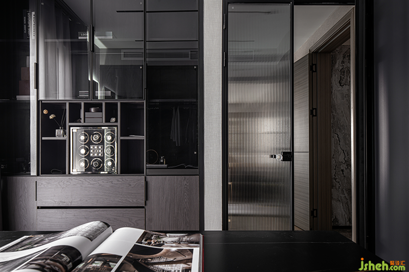 利用隔板和抽屜搭建合理的展示柜,業(yè)主生活中愛好的物品在空間中被謹(jǐn)慎地呈現(xiàn)出來,機(jī)械表,郵票等。