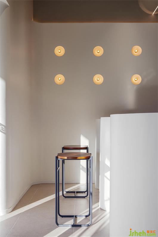 The matrix of modeling lamp based on cell particles is orderly distributed on the wall, presenting an extremely simple aesthetic feeling between virtuality and reality. Warm orange lights similar to the brand color pave a warm and healing space base to create a continuous and dynamic space experience for customers.