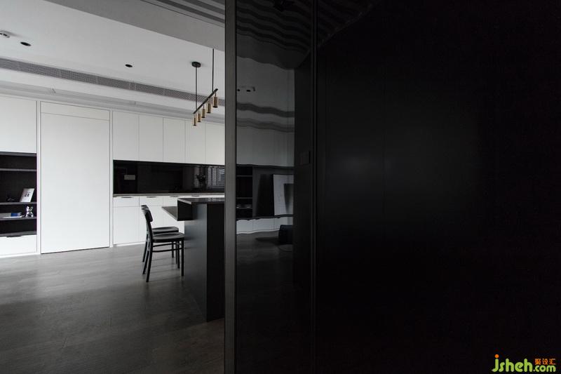 鞋柜搭配半透的黑玻璃,玄關(guān)兩邊干凈統(tǒng)一的色調(diào)處理更具空間感,加上材質(zhì)的反射效果讓視覺有了延伸感。從踏進(jìn)家門的那一刻開始,已經(jīng)明顯感覺到空間的寬敞。