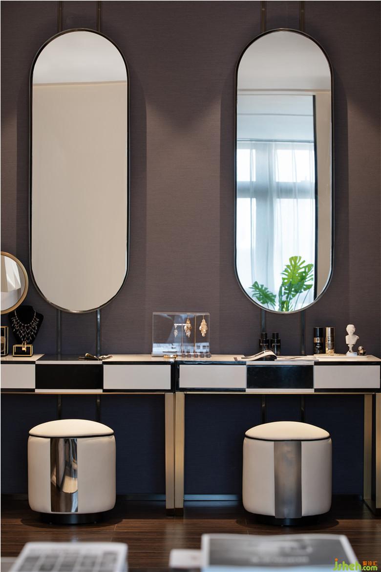 金屬感十足的造型間,室內(nèi)設(shè)計(jì)師配以兩面橢圓形鏡面,讓室內(nèi)更顯通透,里間最主要的攝影區(qū)域,較之卻最為簡單直白。