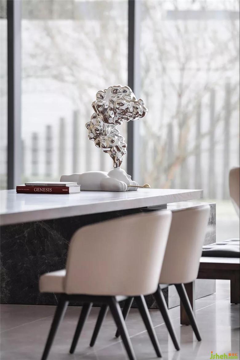 窗一側(cè),空間被有序的排列、層變的符號(hào)、立體的元素染上明快自然的色氣,煦陽(yáng)透過(guò)玻璃帷幕,繽紛了一室的清雅,如同隨指尖跳躍的音符,歡快明朗。