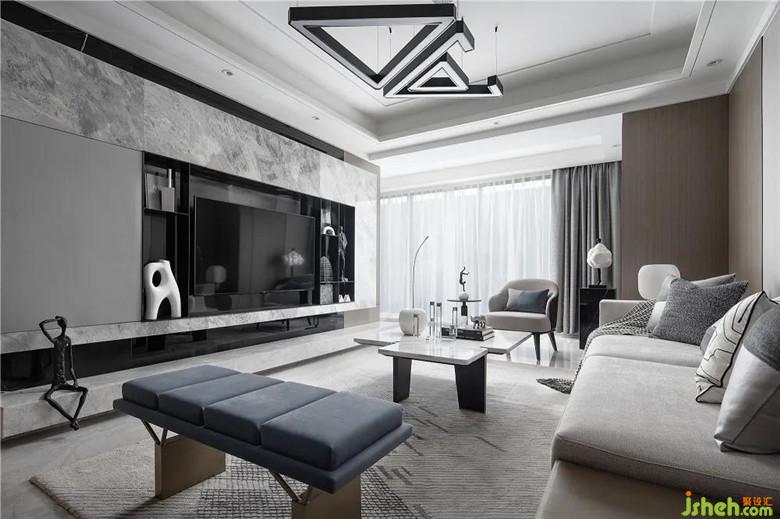 物件作為空間的載體,其添置、鋪呈不單是空間的過渡,更是與人物,物與空間對(duì)話的“符號(hào)”。木的溫潤,大理石的素凈,織物的柔軟,都稀釋著黑色不銹鋼墻面帶來的冷峻感??臻g的玩偶藏匿著樣板房設(shè)計(jì)師對(duì)生活的玩心,工藝拙中納巧,彰顯著居住者特立獨(dú)行的個(gè)性。