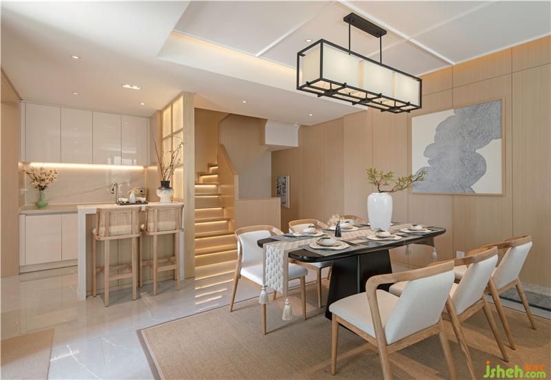 一步一風(fēng)景、一景一陶然。一層整體利用原木色飾面和利落線條協(xié)調(diào)統(tǒng)一客餐廳氛圍,表述畫幅的純粹感與詩意感。全開放式布局營造空間的深度,客餐廳既自由開放卻也互不干擾。