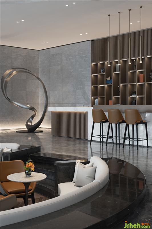 售樓處設(shè)計在大理石鏡面的映射下,光影是唯一變幻的裝飾手法