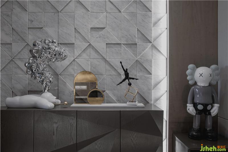 光連接了建筑和風景,落地玻璃與層高挑空表達出空間的光影質(zhì)感,令窗外景致一覽無余。大理石紋理釀雅韻,靈動視覺見風云。以白色,灰色為基調(diào),淺色壁紙,皮革及金屬為點綴,整體感受沉穩(wěn)并具有品質(zhì)感,使得整個客廳在天地之間盡顯“四兩撥千斤”的從容感,為我們輕松營造開闊又含蓄、別有一番滋味的雅韻會客格局。