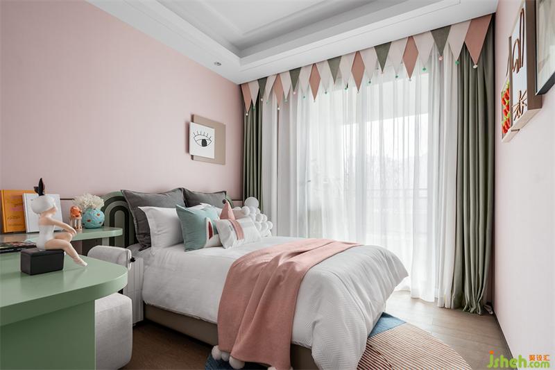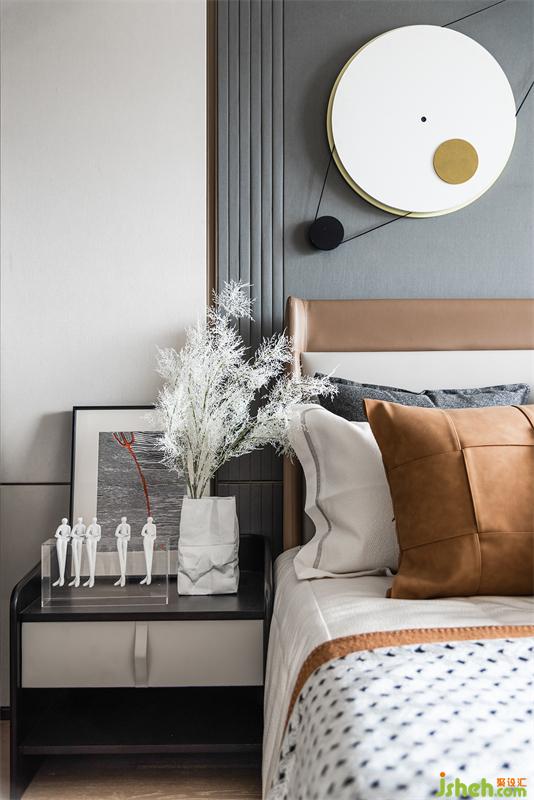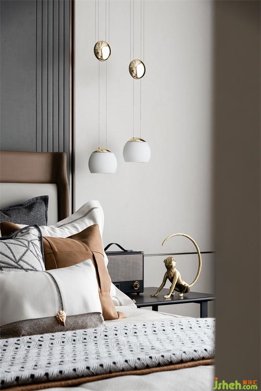臥室保持統(tǒng)一的配色,靜雅的線條、安靜不張揚。優(yōu)雅的配色溫暖了整個生活,只留下素雅中夾雜著一份寧靜,視覺上的平適感讓空間更加具有高級感。空間界線,私密感與舒適度都在細節(jié)處體現(xiàn),色彩的輕盈,與開放格局深度融合,又形成整體感。