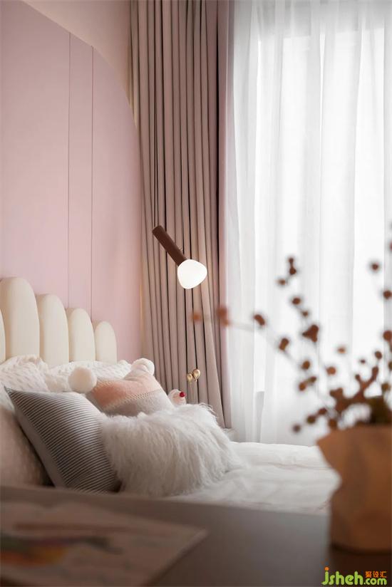 鏈接柔軟的臥室,是我們鏈接著過往時(shí)光、當(dāng)下記憶與未來暢想,情感與溫度是永恒的主題。樣板房設(shè)計(jì)女兒房延續(xù)素凈的白底畫布,融合柔煦的粉色,點(diǎn)染盎然生動(dòng)的胡桃夾子,自然風(fēng)、光輕盈流經(jīng),觸感和空氣中的味道烘托出柔美氣質(zhì)。