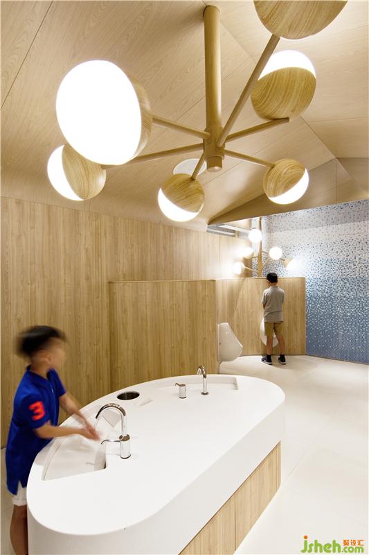思維專區(qū)被設(shè)計為一個開放式學(xué)習(xí)中心為父母和孩子們提供了工作坊和課程。室內(nèi)兒童樂園設(shè)計該區(qū)域以綠色和有機(jī)景觀為主題,綠色具有刺激兒童記憶的作用。小型的桌椅有不同的形狀可以讓使用者根據(jù)不同活動需求移動組合,孩子們也可以自由地坐在閱讀區(qū)地面,以增加樂趣并激發(fā)他們的學(xué)習(xí)興趣。