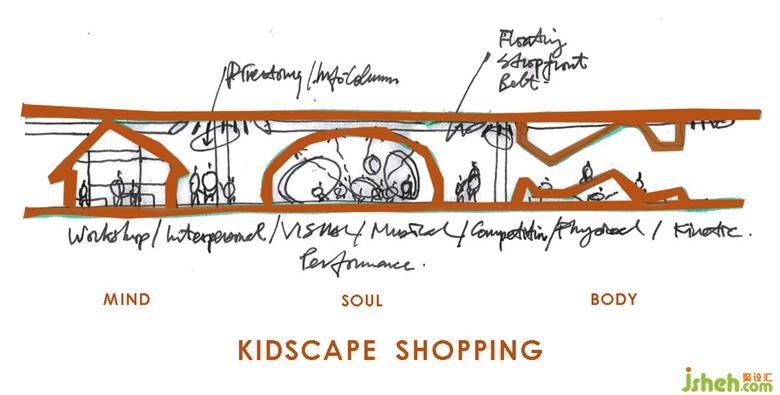我們深信理想的兒童商場(chǎng)不應(yīng)成為主題公園,而應(yīng)超越現(xiàn)實(shí),并提供想象空間的體驗(yàn)。我們旨在通過抽象形式創(chuàng)建一種教育購物的兒童樂園,其中融合了孩子和父母的魔幻和俏皮感。