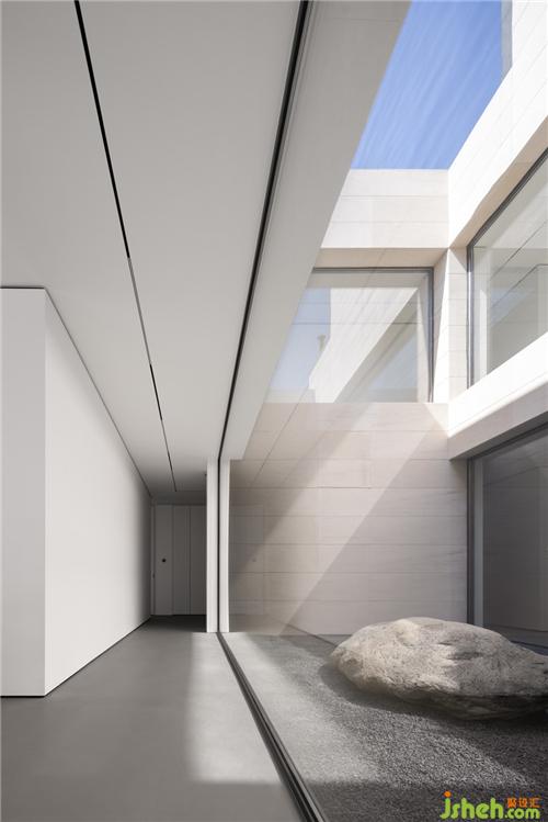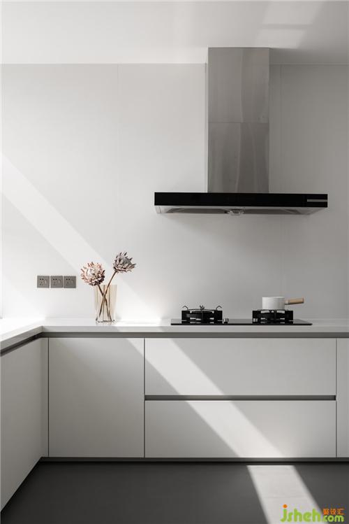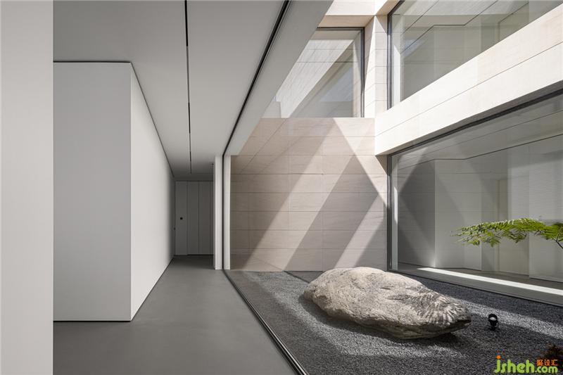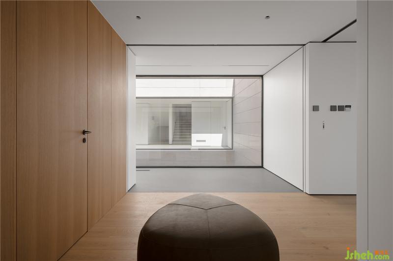 純白色的臥室容易給人一種冰冷感,因此設(shè)計(jì)師在臥室區(qū)域選用了原木色柜體與地板,中和了整體的冷感,干凈的純色背景,室內(nèi)光線投射顯現(xiàn)不同層次的感官感受,增添整屋的精致感蘇州別墅裝飾。
