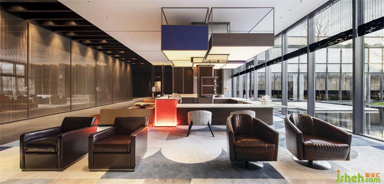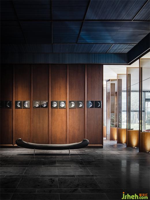 “覺知亭”四面石墻低垂,僅與水面相接處留有間隙。南京會所設(shè)計投身其中,喧鬧世界于己無關(guān),水面溫柔如鏡,投射一派清快。水天相接處獨己一人,空空畫境里滿是自在?!坝X知亭”用一種類似于擠壓的方式完成了空間衍生,建立在簡潔審美上的試驗性設(shè)計提升了空間美感。