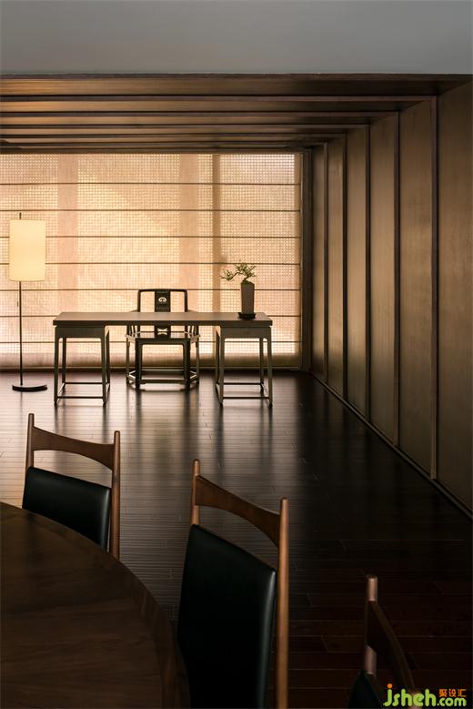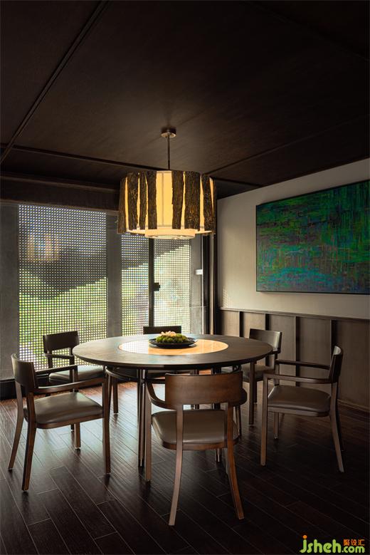 一簾半遮半掩的后院山色襲人,透過玻璃捕捉到山脈另一端的朝陽(yáng)。觀景臺(tái)纖細(xì)柱體陣列延伸至遠(yuǎn)方與草木相接,廊檐借助頂棚金屬板的漫反射,放大戶外四時(shí)之景,融合室內(nèi)人物活動(dòng)。南京會(huì)所設(shè)計(jì)者以拓寬維度的手法,使纖細(xì)得以彰顯出磅礴之勢(shì)。此時(shí),觀景臺(tái)由于食客的欣喜而充滿暖意,恰如春光融和。
