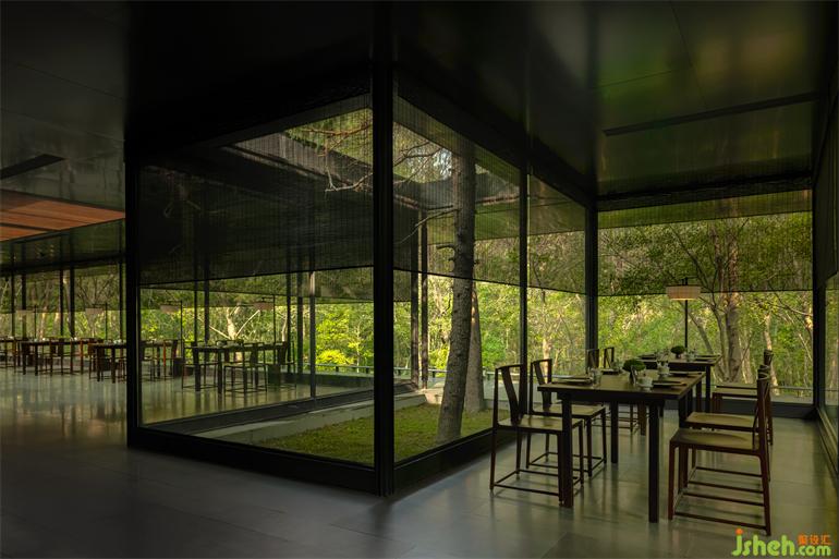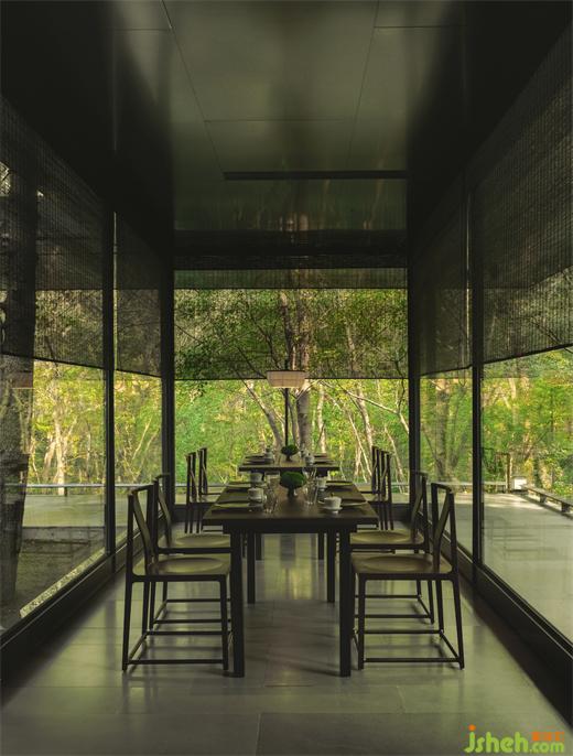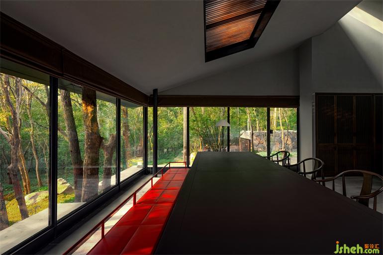 南京會所設(shè)計經(jīng)由深幽小道的指引,有亭坐落于更深處,懸挑出山體,于山林中潛行,沉在谷底仰望日光印在樹梢推移變換。那一刻心臟停止了跳動,一對巨大的鹿在近處掠過,悄然無息,沉穩(wěn)、有力、典雅。是的,我們處在天地無涯的形式中,自然有我們不能理解的自我認證,而此刻的體驗也無須去理解,因為我們也是她其中的一部分。