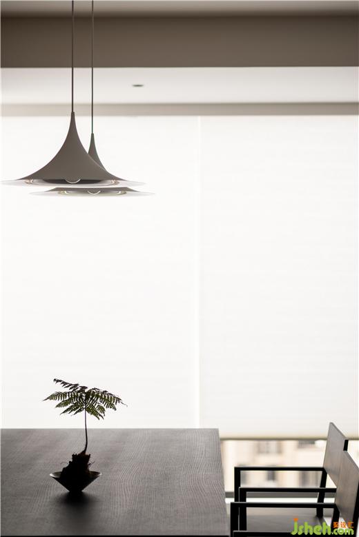 在家庭氛圍之外,由于老師這個職業(yè)的工作需求,還是預(yù)備一間獨立的書房。原本的餐廳部分區(qū)域和北陽臺處用玻璃和紗簾隔出一小片天地。朝北的室外景觀是整個建筑房屋中最好的,所以書桌臨窗布置,提供更安靜專心的支撐。