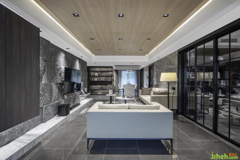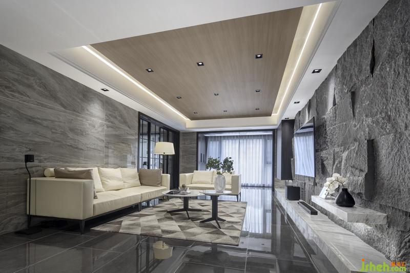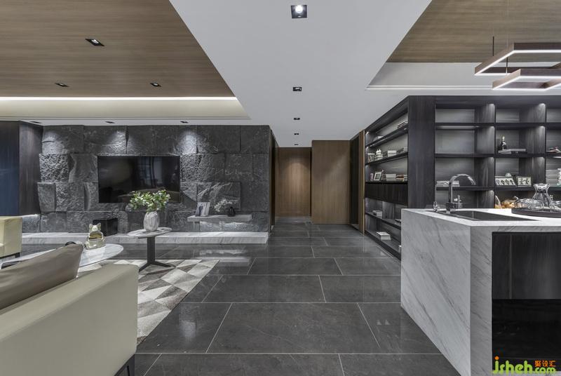 空間采用了天然毛石,木質飾面板,天然大理石,石材瓷磚等