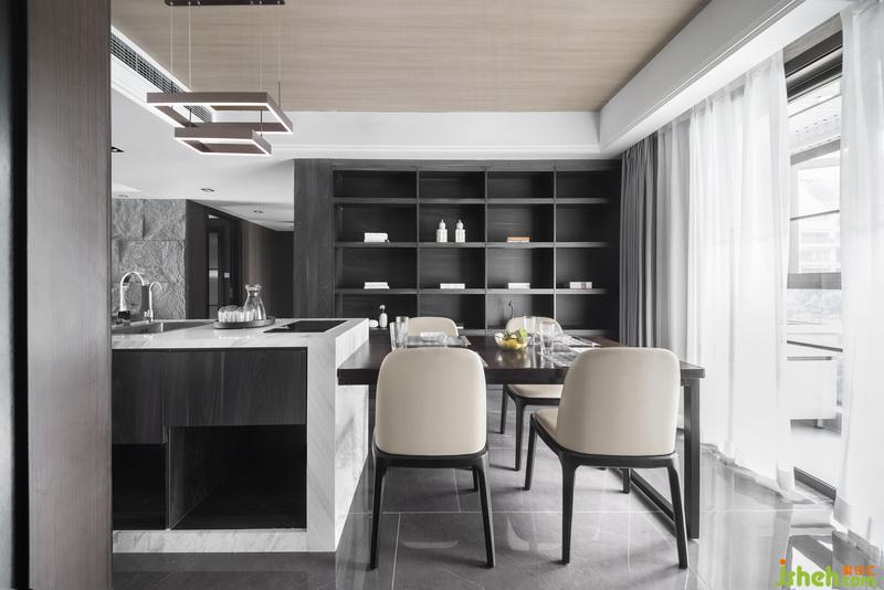 1:餐廳拆除L型原墻處理為餐柜及酒柜 餐區(qū)增加吧臺電池爐 讓就餐區(qū)更為豐富