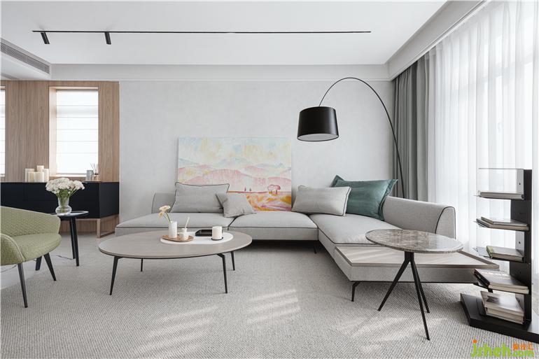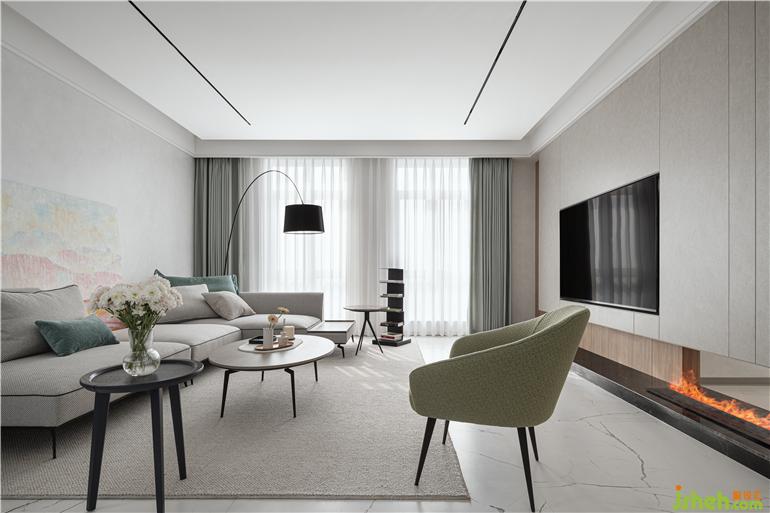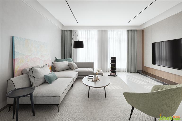 2、電視墻拆除多余墻體,做成懸空電視墻,使空間感更加通透