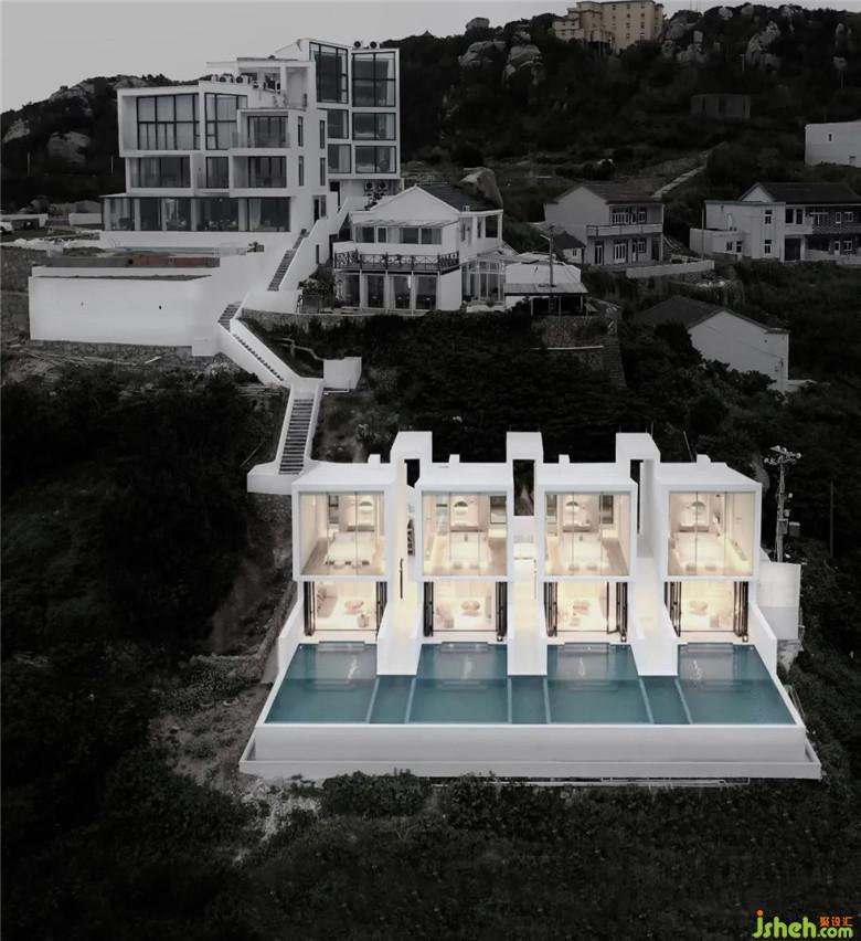 墻體向水面延伸使建筑有了明確的方向性,視線透過水面指向海平面,建筑體所帶來的秩序感構(gòu)成了人們對于場地的另一種感知。