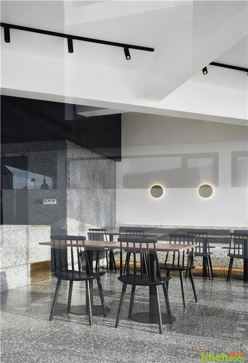 餐廳部分沿用整體的黑色基調(diào),在8m*8m的建筑紅線內(nèi),利用對(duì)角拉出整個(gè)屋面的受力結(jié)構(gòu)體,使整個(gè)屋面呈現(xiàn)懸浮感,上海酒店民宿設(shè)計(jì)斜面的處理也弱化了由于尺度限制所帶來(lái)的空間局促感,在視覺(jué)上形成多維度的空間縱深感。