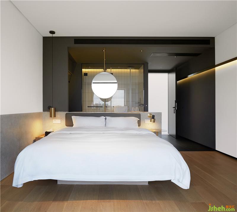 作為主體的住宿空間,采用模塊化設(shè)計(jì)方式,在節(jié)約成本的同時(shí)方便施工管理,17個(gè)房間共分5個(gè)模塊處理,上海酒店民宿裝修設(shè)計(jì)用極簡(jiǎn)的手法與建筑形成統(tǒng)一關(guān)系。