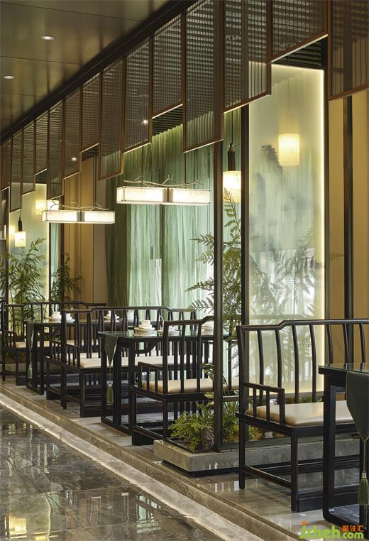 在感受現(xiàn)代東方美學之余,徐州酒店設(shè)計采用環(huán)保、有機、自然生態(tài)的理念注入一層卡座區(qū)。綠植小景的植入,窗邊綠色窗紗點綴,伴隨“隔簾花葉有輝光”這樣的景致,構(gòu)建出一處生機盎然的自然場所,營造清新愉悅的就餐環(huán)境。