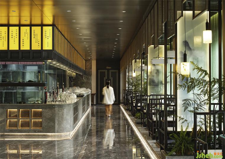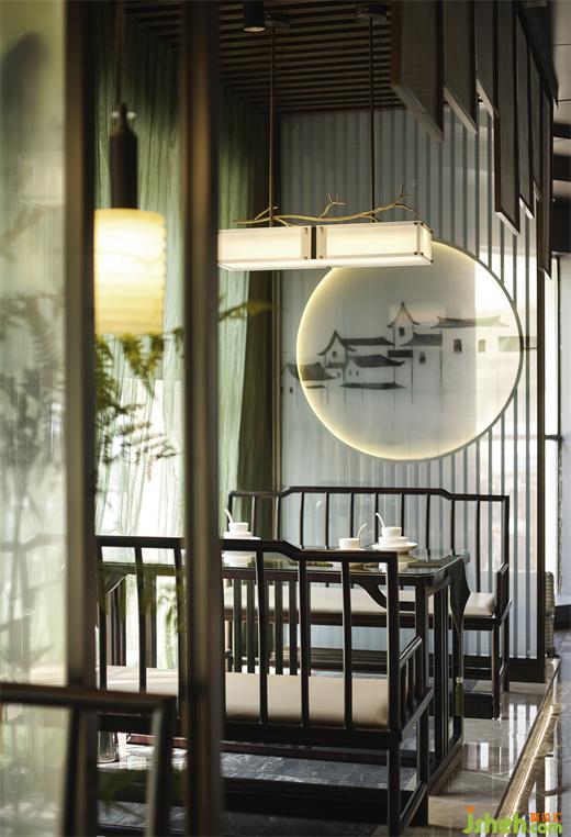 在本案中,徐州酒店設(shè)計師從水的靈動中獲取靈感,以現(xiàn)代手法演繹山的起伏,水的纏綿,通過綠植、假山等綠色清新自然裝置的渲染,演繹出具有東方品質(zhì)的現(xiàn)代風格,來完成空間的藝術(shù)化表達,打造水與自然的新中式餐廳。
