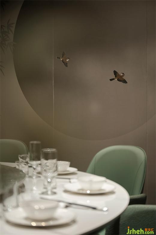 質(zhì)感典雅的墨綠色,搭配金色燈飾,徐州酒店設計在低調(diào)與張揚、奢華與內(nèi)斂之間,穩(wěn)穩(wěn)地把持著平衡,營造復古優(yōu)雅的就餐氛圍。