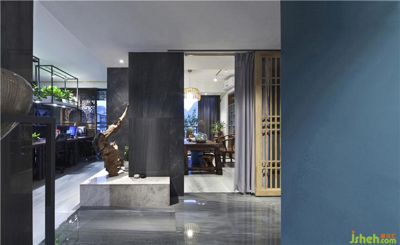運(yùn)用了中國(guó)文化的“隔”、“障”、“框”、“透”等手法來(lái)分隔組合空間,整體視覺(jué)流暢,半遮半掩的花格和布簾等,隔而不斷,避免了空間設(shè)計(jì)中的死角區(qū)域,保證空間之間的通透性、獨(dú)立性以及連貫性,猶抱琵琶半遮面,中式傳統(tǒng)元素為空間增添些許文化意蘊(yùn)和趣味。