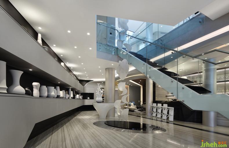 溫暖的木質(zhì)天花,白色幾何墻面的斑駁光影,柔軟而慵懶的沙發(fā),別墅裝飾木色與黑白的碰撞,確保了整體的開闊及藝術(shù)張力,碰撞出情緒化而當(dāng)代性的空間。