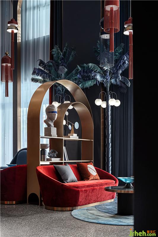通過藝術(shù)化的營造,墻體弧形曲線、光線、家具、燈具設(shè)置飾品等都成了藝術(shù)化的一部分,每個物件緊密結(jié)合,相互呼應(yīng)。冷與暖、躍動與靜謐、色彩的感性與線條的理性,看似反差的元素碰撞出強(qiáng)烈的個性,看似高冷的藝術(shù)與有溫度的生活融為一體。