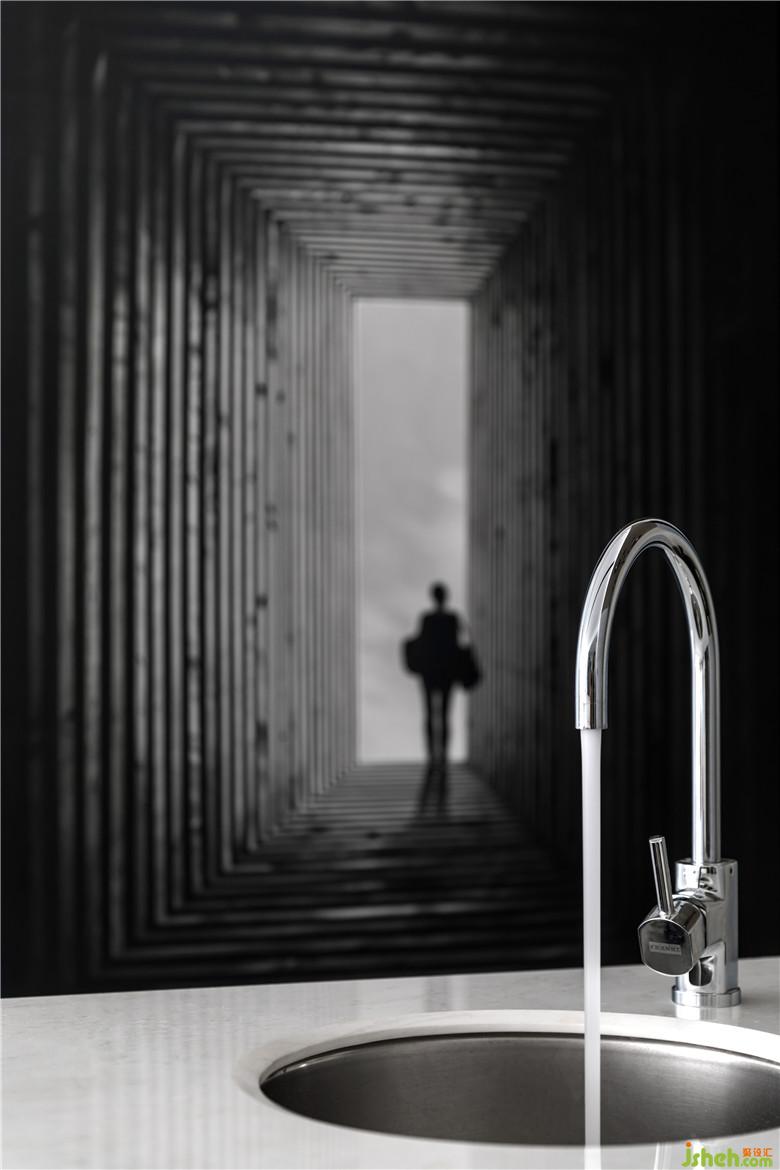 U字型廚房設(shè)計,能充分利用空間,擴(kuò)大操作面積。