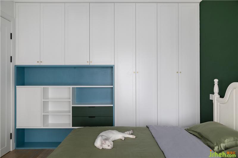 兒童房設(shè)計(jì)師選擇用白色打底的空間配上摩登藍(lán)和寶石綠形成互補(bǔ),以藍(lán)色作為主打色,綠色作為點(diǎn)綴色,這樣空間里的色彩就不會(huì)顯得平均、平庸,而是有主有次。室內(nèi)設(shè)計(jì)師