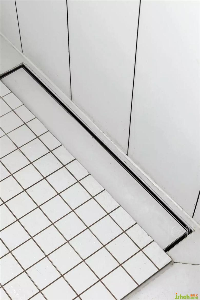 淋浴間的地面我們特意做了下沉式的地漏設(shè)計,盡可能在小的空間里保證使用時的舒適感。