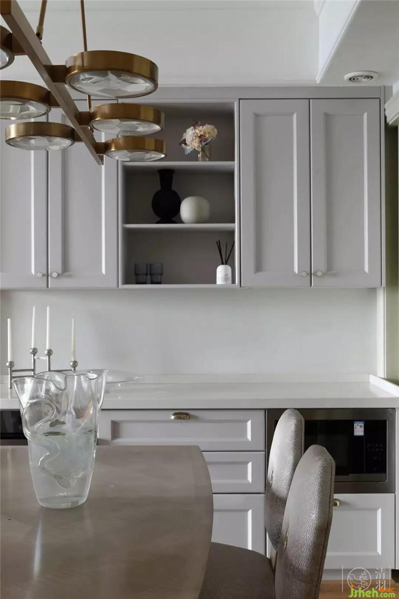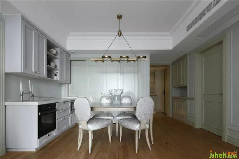 餐廳空間原本顏色簡(jiǎn)淡,我們?cè)谠A(chǔ)上添置了現(xiàn)代而富有光澤的吊燈以及餐桌椅,用恰當(dāng)好處的設(shè)計(jì)筆法,給空間帶來了優(yōu)雅的魅力與高級(jí)之感。
