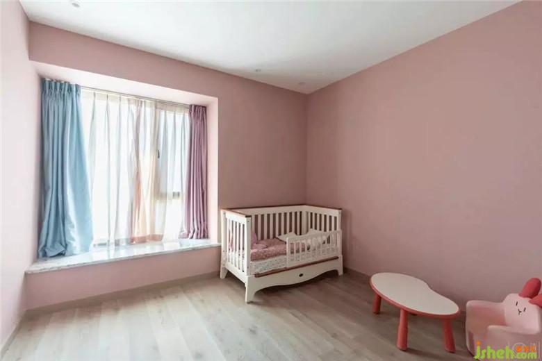 粉色的墻面和淺藍(lán)色、淺紫色的窗簾就是唯一的裝飾品。一個兒童床、一個小桌子,一個小沙發(fā),孩子才是這個空間的主角,未來她會在這里裝進(jìn)無數(shù)的夢想。