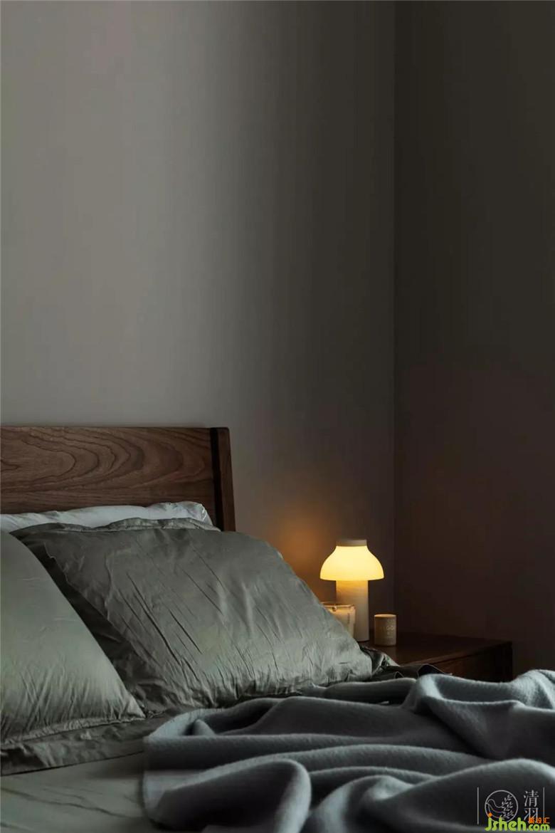 次臥原木色調(diào)的家具配合淺灰色墻面,舒適而極具質(zhì)感,符合老人的喜好和心境。