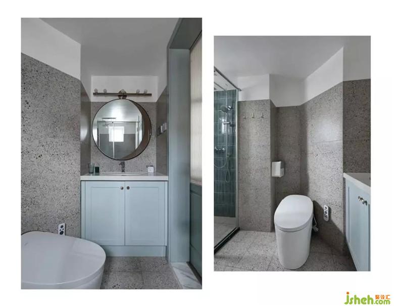 水磨石加防水乳膠漆的操作,讓整個衛(wèi)生間顯得很高級。