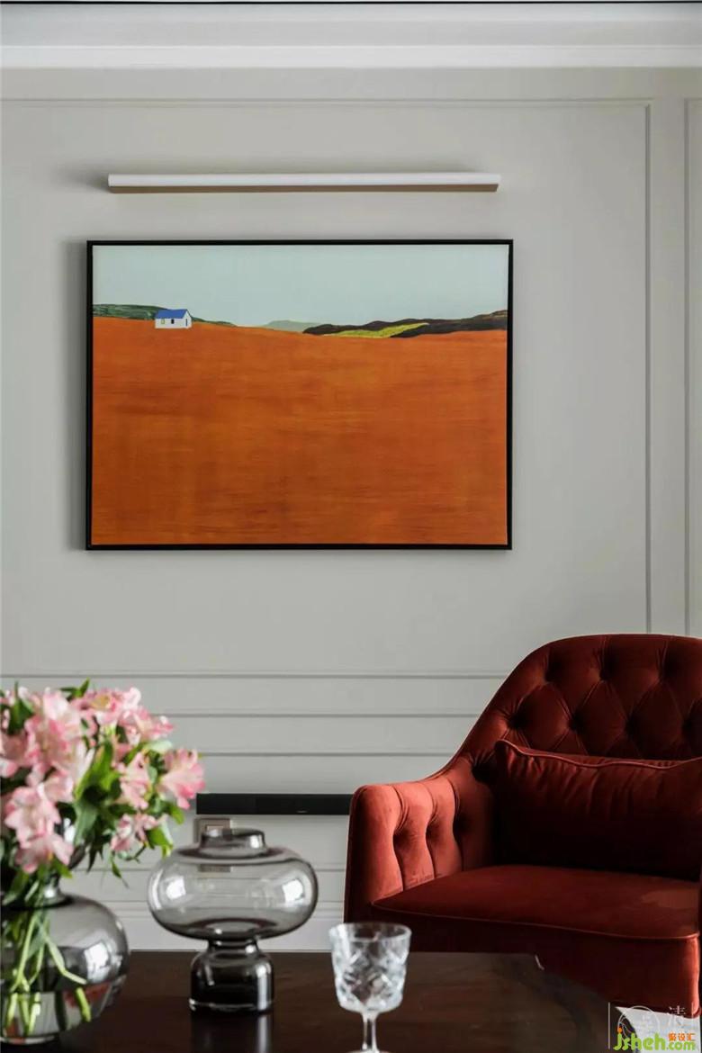 臟臟橘色的單人沙發(fā)配合墻面同色系的油畫,使得整個(gè)空間有了呼應(yīng)、熱情又優(yōu)雅。