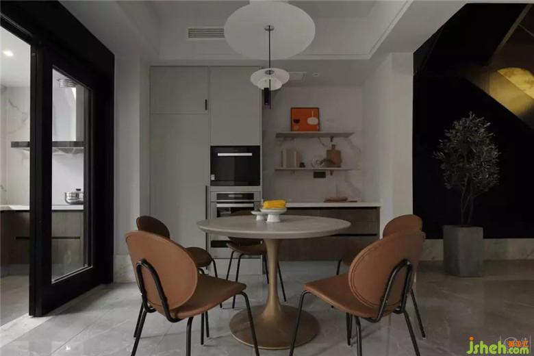 三層樓的小別墅里安裝了地暖、中央空調(diào)、電梯,希望來到這里的人不需要被溫度、樓梯所束縛,從而擁有更加舒適方便的體驗。我們讓三個臥室呈現(xiàn)出不同的空間表情,為每個臥室搭配了不同的色彩和擺設(shè)。樓梯間出現(xiàn)的“月亮”,寓意“海上升明月,天涯共此時”。配合背景圓形鏤空的造型,我們希望帶給所有來這里度假的人們"團(tuán)圓"的感覺。移步換景,團(tuán)圓的概念貫穿在整個空間。
