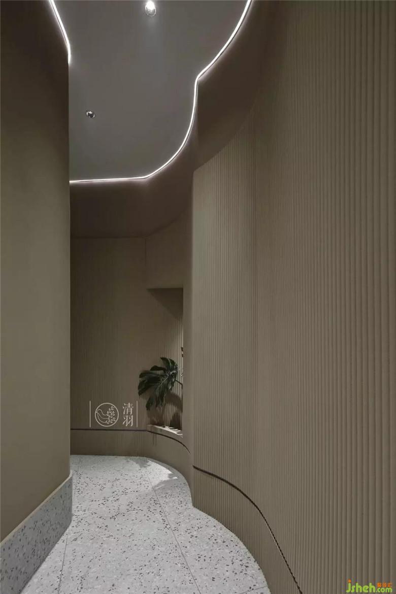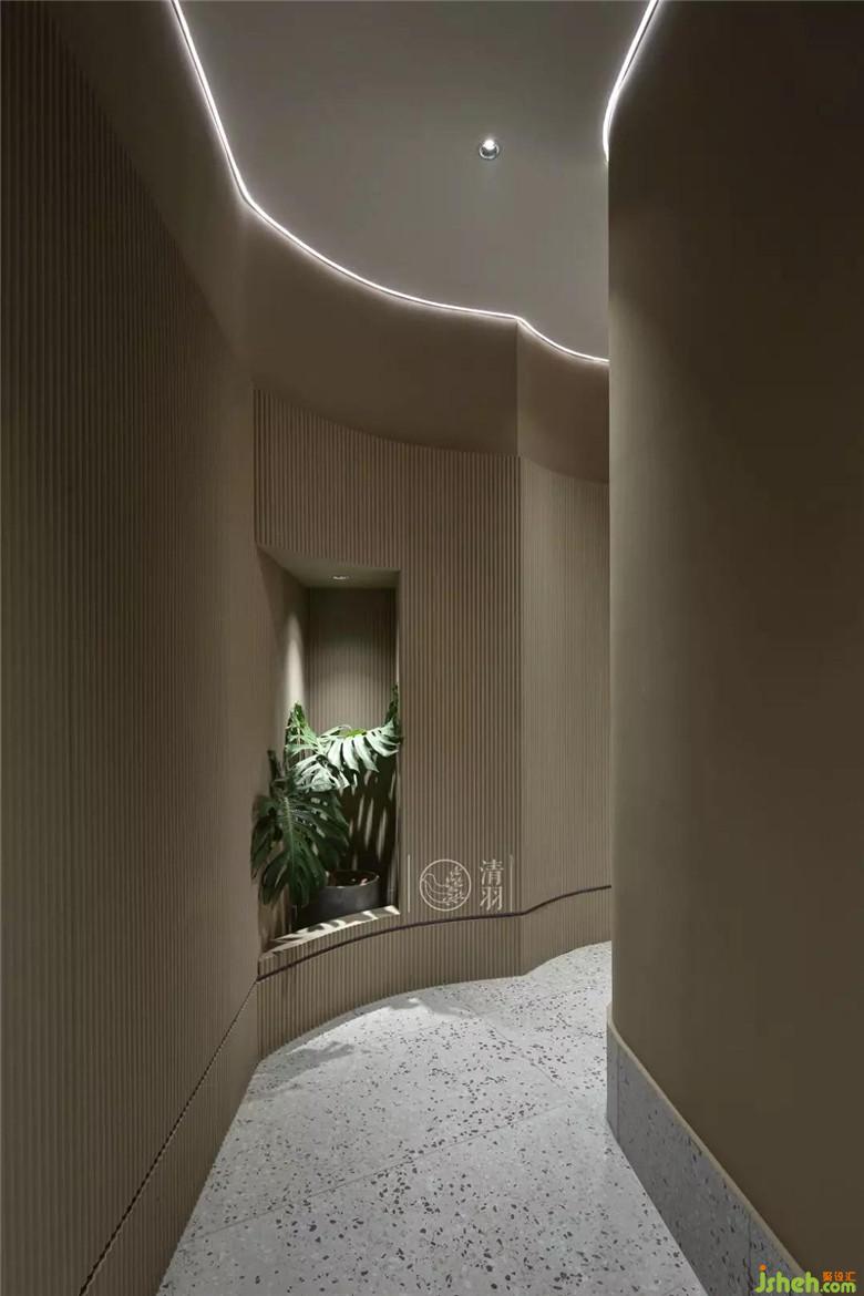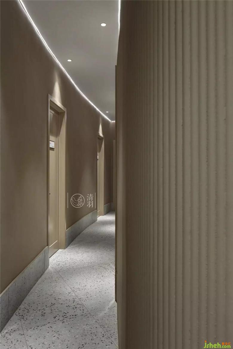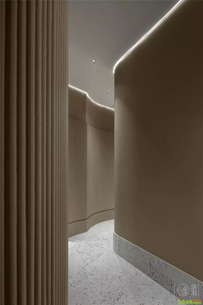 走廊的曲徑通幽為美容美體區(qū)域帶來(lái)安靜的感覺(jué)和更好的私密性。