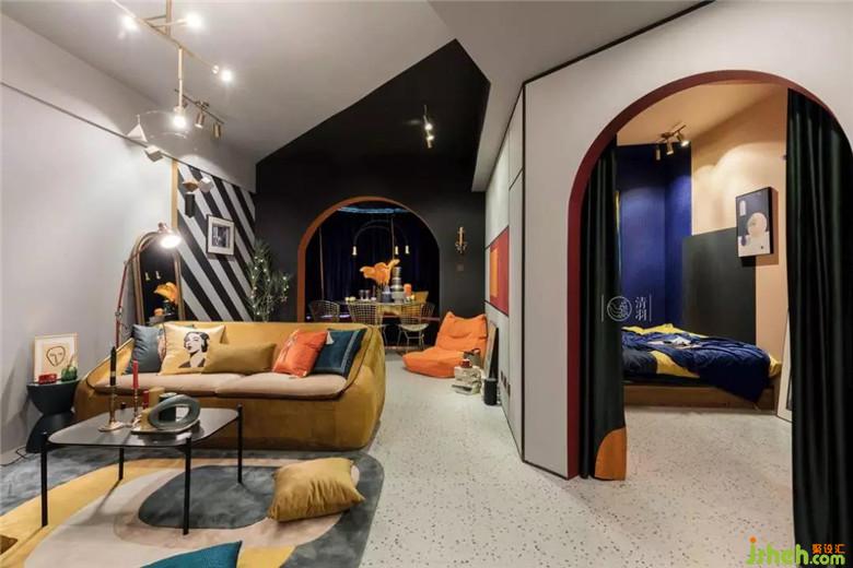 雪妹妹一家都是川劇藝術(shù)家,這一次我們沒(méi)有選擇延續(xù)之前他們家《安靜之?!返娘L(fēng)格,而是選擇了更契合她職業(yè)的一種氛圍——濃墨重彩。我們以川劇臉譜油彩為靈感,結(jié)合當(dāng)下流行色和幾何元素,加上類似舞臺(tái)燈光效果的照明方式,在這個(gè)老房子里打造出一個(gè)全新的舞臺(tái)。