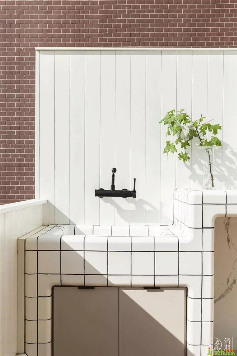 洗手臺可以算是這個露臺的小驚喜,試想在一個陽光明媚的清晨擼起袖子洗刷刷,或是接上一根水管沖洗一下綠葉,幸福指數(shù)血條蹭的一下就滿了吧!