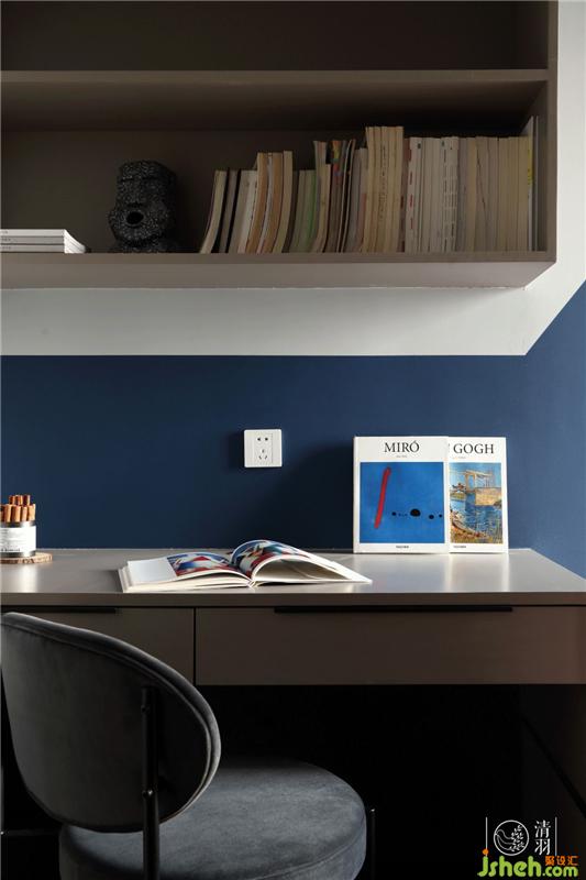 從客廳走向書房,主人公喜歡安靜,所以我們采用木質(zhì)家具的淺棕色、米白色和墻面局部的墨綠色相互搭配融合,簡簡單單的幾個色調(diào),加上家具的一字型和L字型,再節(jié)約空間的基礎上增加儲存容量,也將把整個空間的狹小、方寸之感拉伸,增加空間功能性。