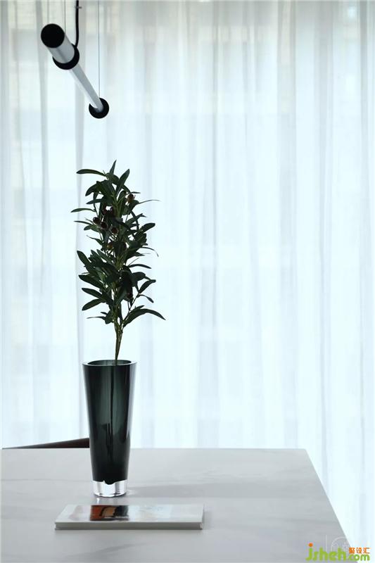 溝通過程中,我們了解到兔子平時有喜歡烘焙的習(xí)慣,在餐廳西廚區(qū)我們將冰箱嵌入到頂?shù)母吖瘢黾恿撕姹旱牟僮鲄^(qū),一字型的操作臺。通透開敞的空間里,造型干凈利落的頂面和墻面,搭配室內(nèi)純粹的現(xiàn)代氛圍,體現(xiàn)出兔子現(xiàn)代簡約的生活品質(zhì)感,也滿足了兔子閑暇之余想要制作西點(diǎn)、咖啡、果汁等興趣愛好。