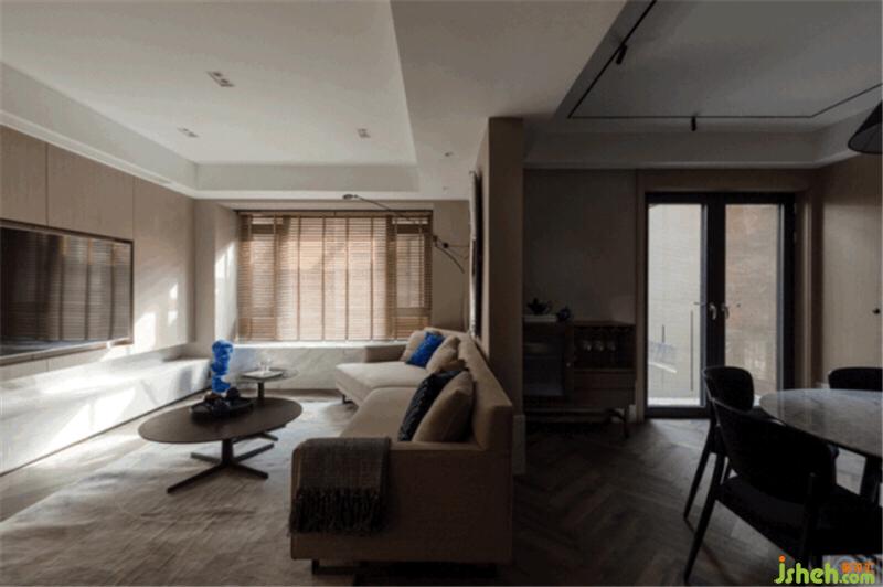 前面我們提到過,房子的位置處于一樓,先天的采光劣勢(shì),因此將整體色調(diào)定為柔和而溫暖的杏仁灰,煙熏灰的木地板呼應(yīng)木飾面,并且采用人字拼法,增加空間的縱深感,此外整套方案中燈光設(shè)計(jì)與燈飾選擇也占了不輕的比重。