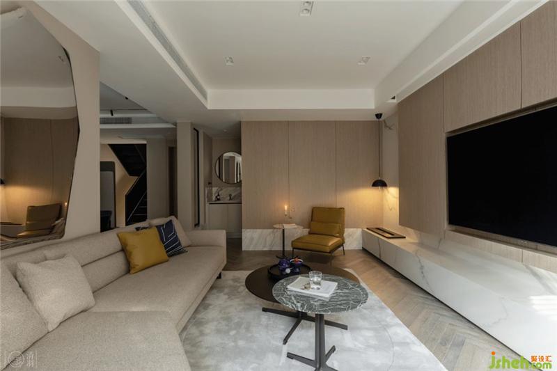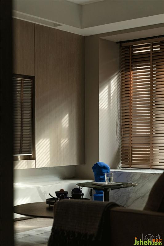 “生長”作為本次空間設計的源發(fā)點,客廳空間我們用了大面積的木飾面,木百葉,搭配巖板,在保證足夠自然溫暖氣息的同時也讓空間有高級的干凈感。室內設計師