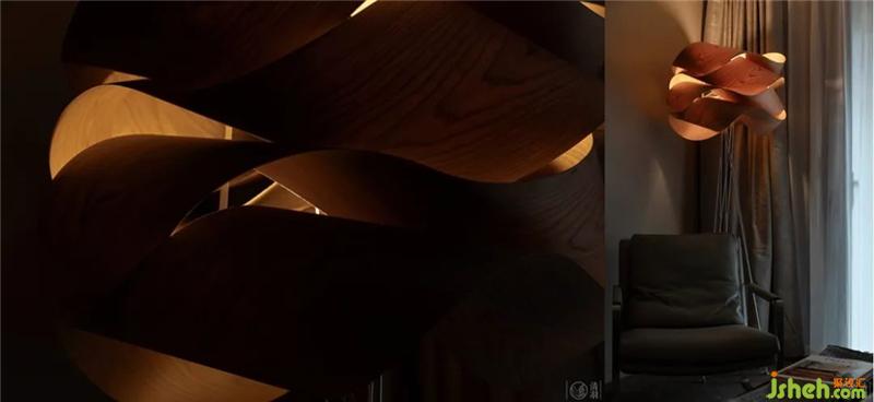 偶爾,也可以將西班牙品牌LZF那盞如云朵般翻涌的Link落地?zé)舭醽恚饩€透過堆疊得異常瀟灑的薄木片M?bius漫射出來,房間里好像又被羅曼蒂克的氣息彌漫。