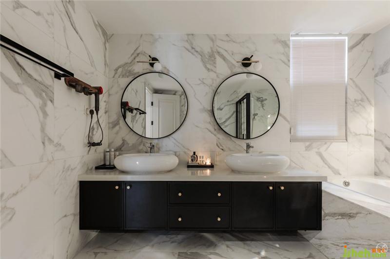 主衛(wèi)是潔凈夢(mèng)幻的卷云,墻面地面都是水墨般流動(dòng)的大理石紋,極具輕柔的整體感。浴缸墻角的圓形吊燈就像流星劃落,小巧復(fù)古的全水晶臺(tái)燈,點(diǎn)上香薰?fàn)T,陷入水的柔情和溫暖中,迎來一天最放松的時(shí)刻。室內(nèi)設(shè)計(jì)師
