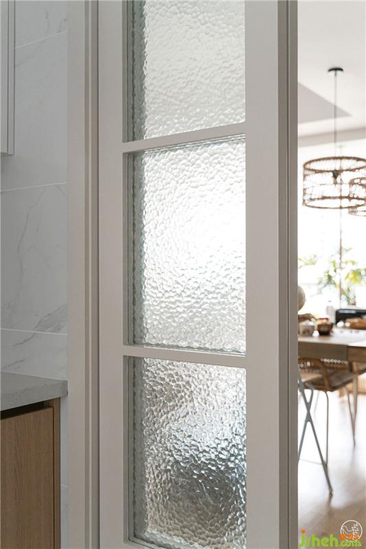 從整體空間的結(jié)構(gòu)布局上看,我們打破了原有的封閉廚房和規(guī)矩的人物動(dòng)線。在中間我們加上一個(gè)根據(jù)操作需求可以左右變化的島臺(tái),既簡(jiǎn)單又增加收納面積,調(diào)和空間里業(yè)主左右活動(dòng)的流暢性和趣味性,打造了一個(gè)寬敞的廚房。